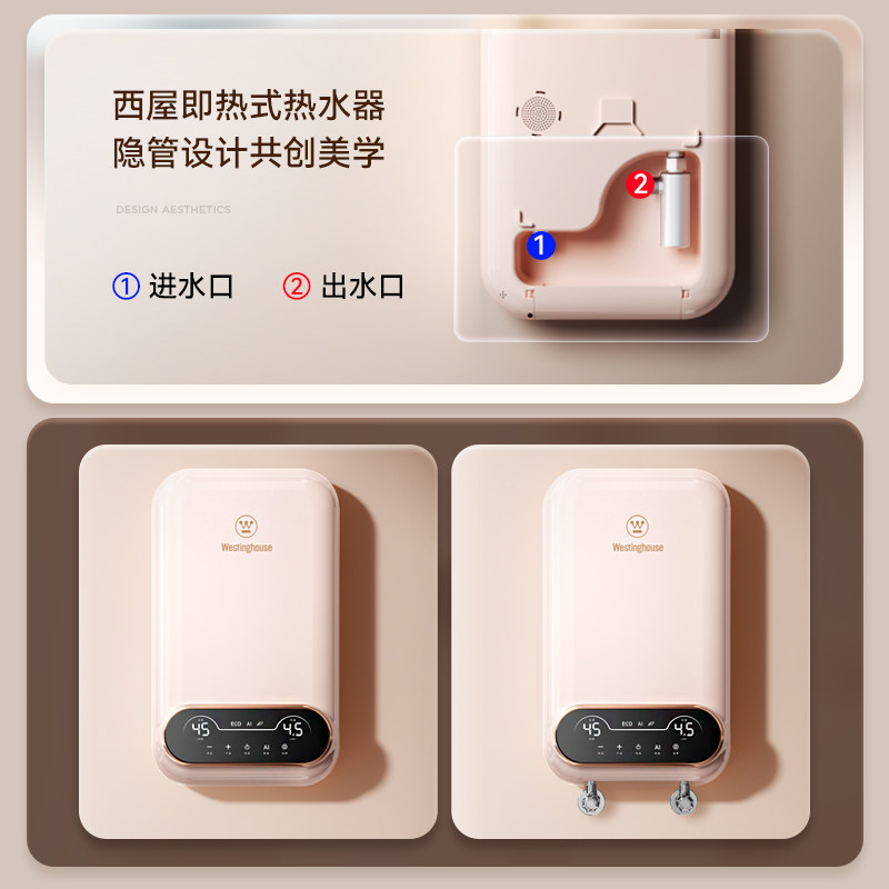 西屋即热式电热水器是一款专为现代家庭设计的速热洗澡神器,采用先进的自动加热与智能变频恒温技术,实现即开即热、无需等待,大幅提升洗浴体验。小巧机身节省空间,适合各类卫生间安装。内置高精度温控系统,可根据进水温度自动调节功率,保持水温恒定,避免忽冷忽热。多重安全保护(防漏电、防干烧、防超压)确保使用安心。节能高效,按需加热,减少能源浪费。触控面板操作简便,实时显示水温,满足全家不同季节洗浴需求。西屋以卓越品质与智能科技,重新定义舒适沐浴新标准,是追求便捷与品质生活的理想之选。