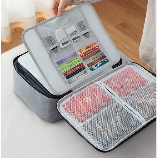 大容量多功能证件收纳包带锁家庭多层文件护照卡包整理箱,专为家庭出行与日常收纳设计。采用优质耐磨材质,结构坚固耐用,内部设有多层分隔,可分类存放护照、身份证、银行卡、机票、合同等重要文件,井然有序。独特带锁设计,提升安全性能,防止信息泄露。包体轻便易携,适合旅行、商务或居家使用。大容量空间兼顾实用性与美观性,拉链顺滑,细节精致。无论是全家出游还是日常整理,都能轻松应对,是守护重要证件的理想选择,让出行更安心、生活更便捷。