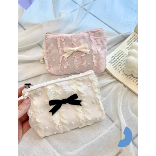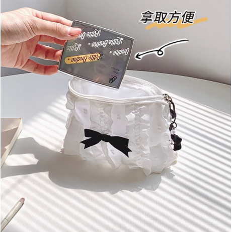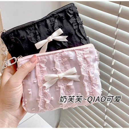 这款新款韩版蕾丝蝴蝶结化妆包,集可爱与实用于一身,专为精致女性设计。采用优质面料搭配精美蕾丝花边,点缀甜美蝴蝶结,尽显温柔气质。大容量分层设计,轻松收纳口红、粉底、眼影等美妆用品,亦可作为零钱包或手拿包使用,一物多用。拉链顺滑,开合便捷,内衬细腻防刮。小巧身形却蕴含强大收纳力,无论是日常通勤、旅行出差,还是约会聚会,都能轻松携带,保持妆容整洁。时尚与功能兼具,是爱美女生不可或缺的随身好物,送人或自用都倍显心意。