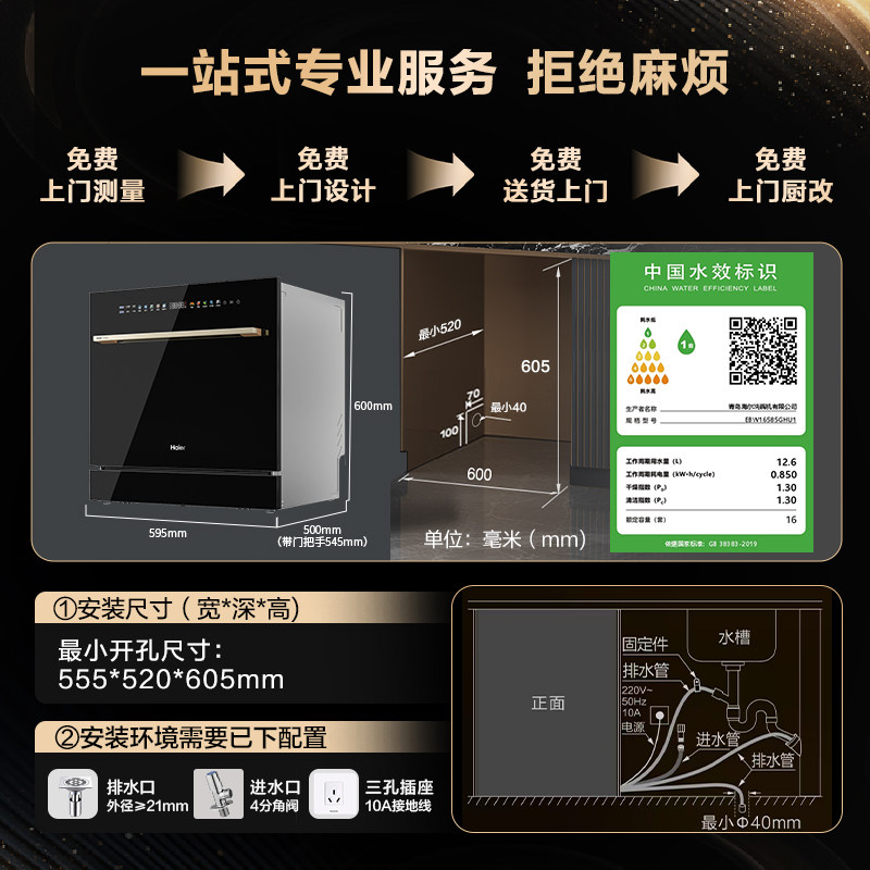 天猫海尔灶下嵌入式16套洗碗机直嵌家用小型全自动智能消毒一体Z16