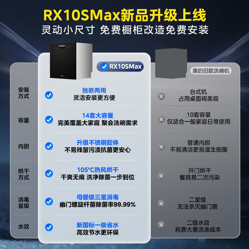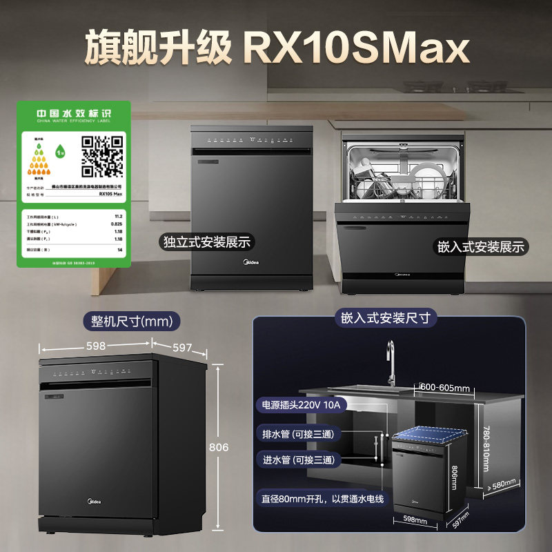 美的洗碗机嵌入式14套RX10SMax智能洗碗机全自动家用独立式新型