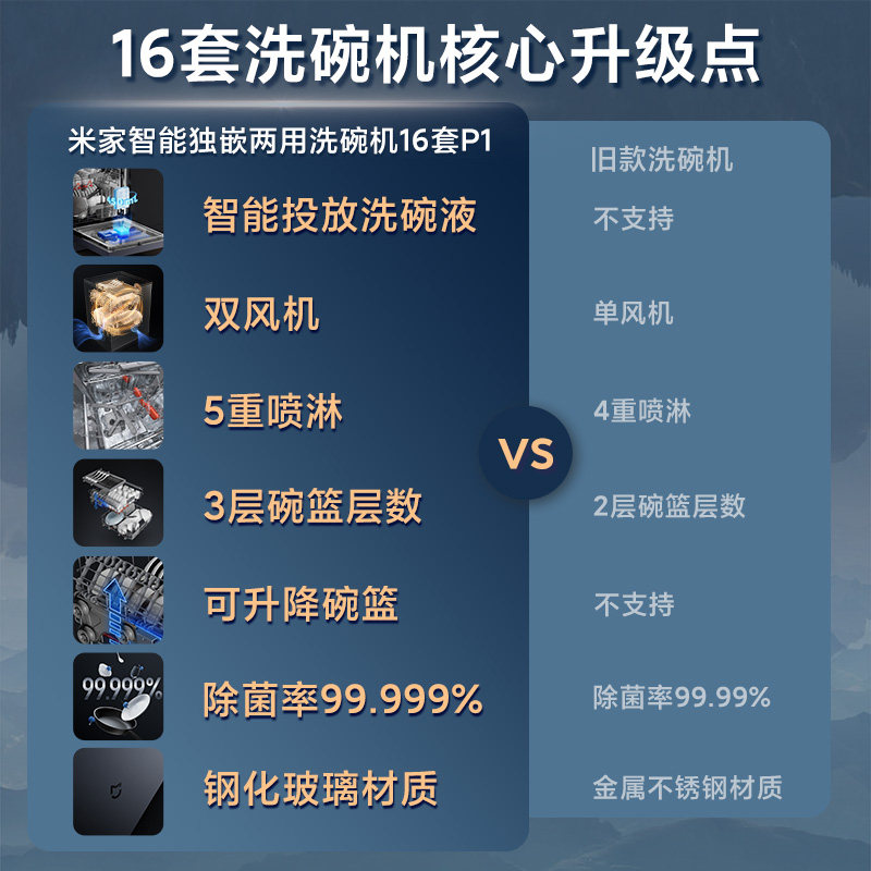 天猫小米官旗米家洗碗机嵌入式厨房家用消毒一体热风烘干全自动16套P1