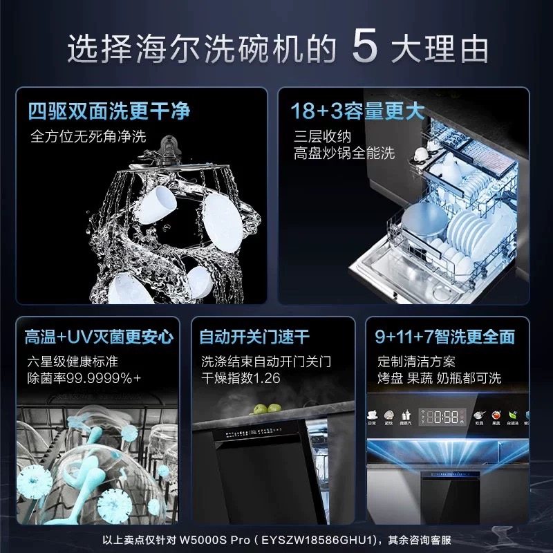 淘宝海尔双面洗水精灵W5000sPro大18+3套智能开关门家用全自动洗碗机