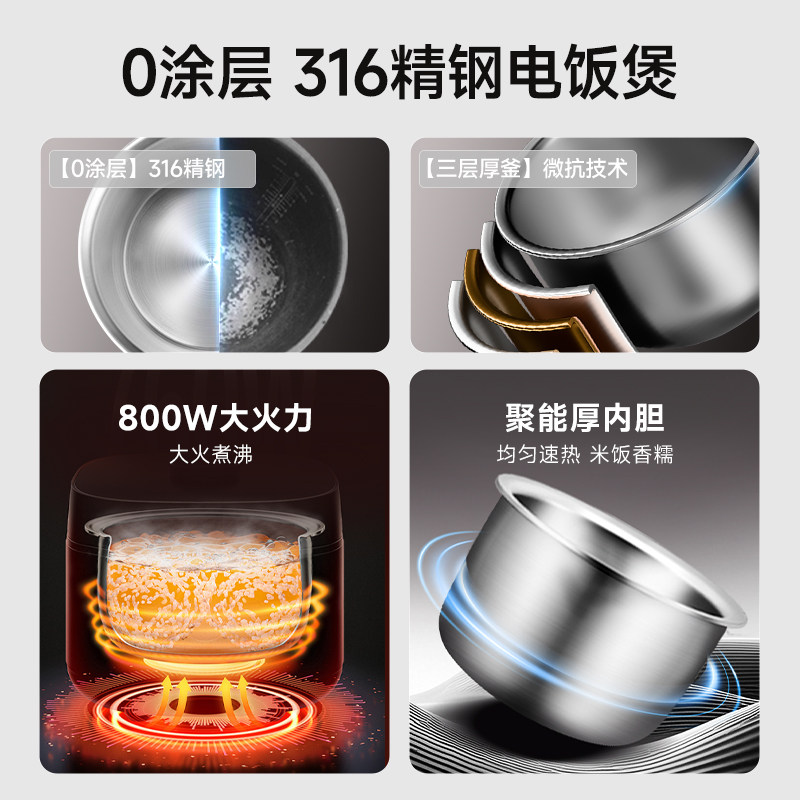 天苏泊尔电饭煲家用0涂层电饭锅3一4人无涂层316不锈钢内胆官方旗舰