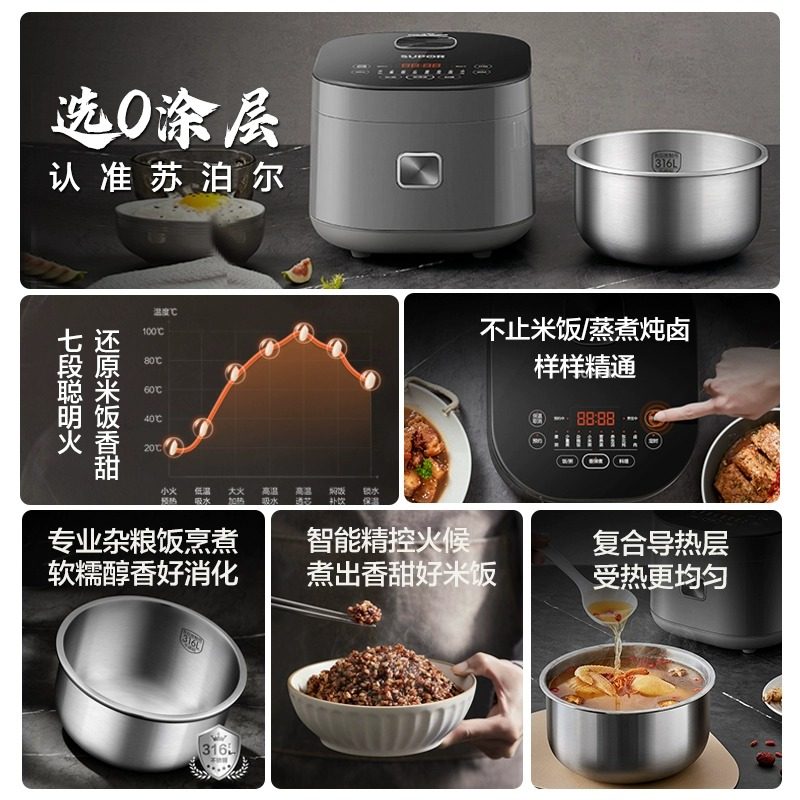 天猫苏泊尔电饭煲家用0涂层电饭锅3一4人无涂层316不锈钢内胆官方旗舰