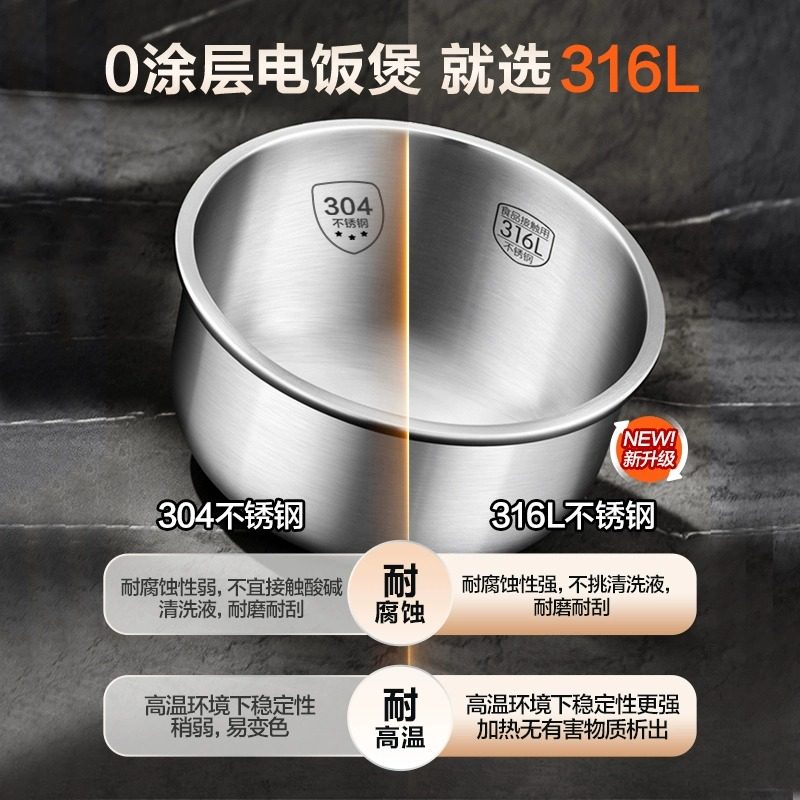 苏泊尔电饭煲家用0涂层电饭锅,专为3-4人家庭设计,采用食品级316不锈钢内胆,无化学涂层,健康安全,耐高温、耐腐蚀,长久使用不易刮花。创新加热技术实现均匀受热,米饭香甜松软,口感媲美传统柴火饭。内胆光滑易清洁,告别涂层脱落烦恼,使用更安心。配备智能预约、多种烹饪模式,满足煮饭、煲汤、蒸煮等多样需求。官方旗舰店直售,品质有保障,售后服务完善。简约时尚外观,适配现代厨房,是追求健康饮食家庭的理想之选。0涂层设计,让每一餐都更纯净、更放心。