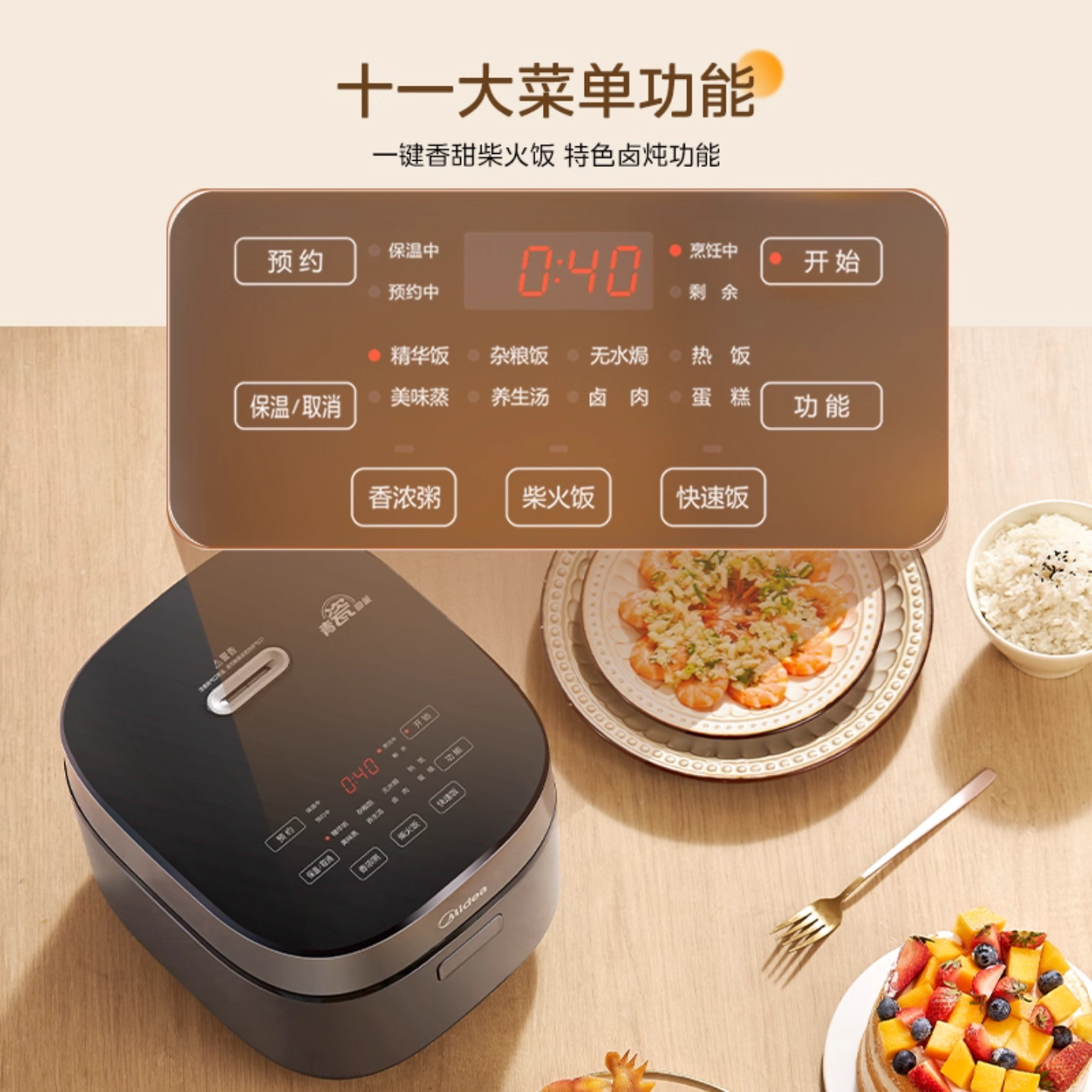 美的电饭煲4升家用4-5人微压烹饪机彩屏大容量料理机3-5升