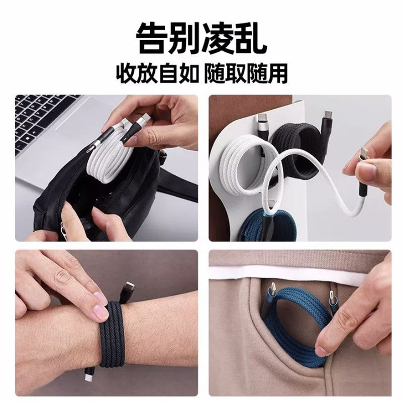 天猫100W磁吸收纳数据线PD快充贴贴线双typec手机平板iPad充电线60w闪冲适用苹果iPhone15华为MacBook车载usb安卓