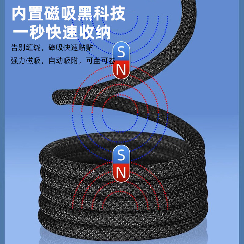 这款100W磁吸收纳数据线支持PD快充协议,采用双Type-C接口设计,兼容性强,适用于iPhone 15、华为、MacBook、iPad、安卓手机及平板等多种设备。最高支持100W大功率输出,60W闪充模式下可快速为设备补充电量,提升充电效率。磁吸收纳设计让线缆更易整理,避免缠绕,便携耐用。内置智能芯片,具备过压、过流、短路等多重安全保护,使用更安心。无论是居家、办公还是车载使用,都能提供稳定高效的充电体验,是数码爱好者出行的理想伴侣。