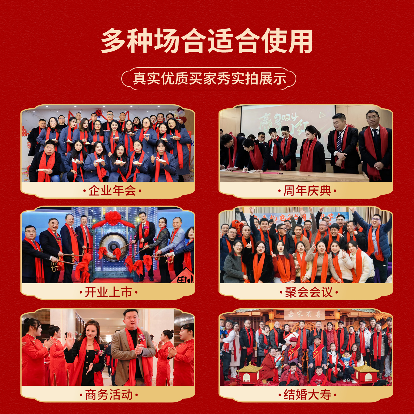 年会红围巾定制logo公司庆典结婚聚会老人生日中国红围巾定制印字