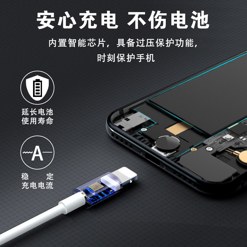 天拾本适用iPhone6s苹果数据线5s/6/7/8/X软胶11pro带灯xr发光se快充闪充xs加长2米短便携6plus冲超耐用7p手机
