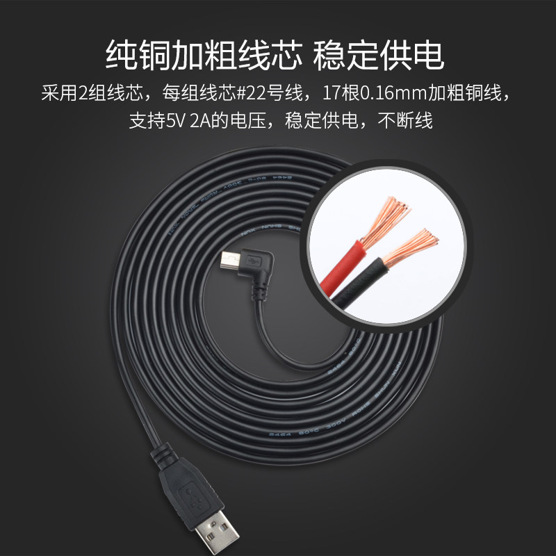 淘宝行车记录仪数据线3.5米miniUSB电源线T型V3口导航仪充电线usb5米