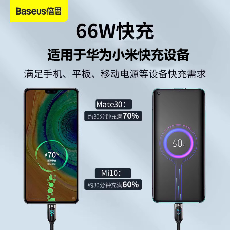 天猫倍思type-c数据线100W超级快充66W数显功率充电线适用苹果17air华为p50p70promate70加长2米mate60prop60p80