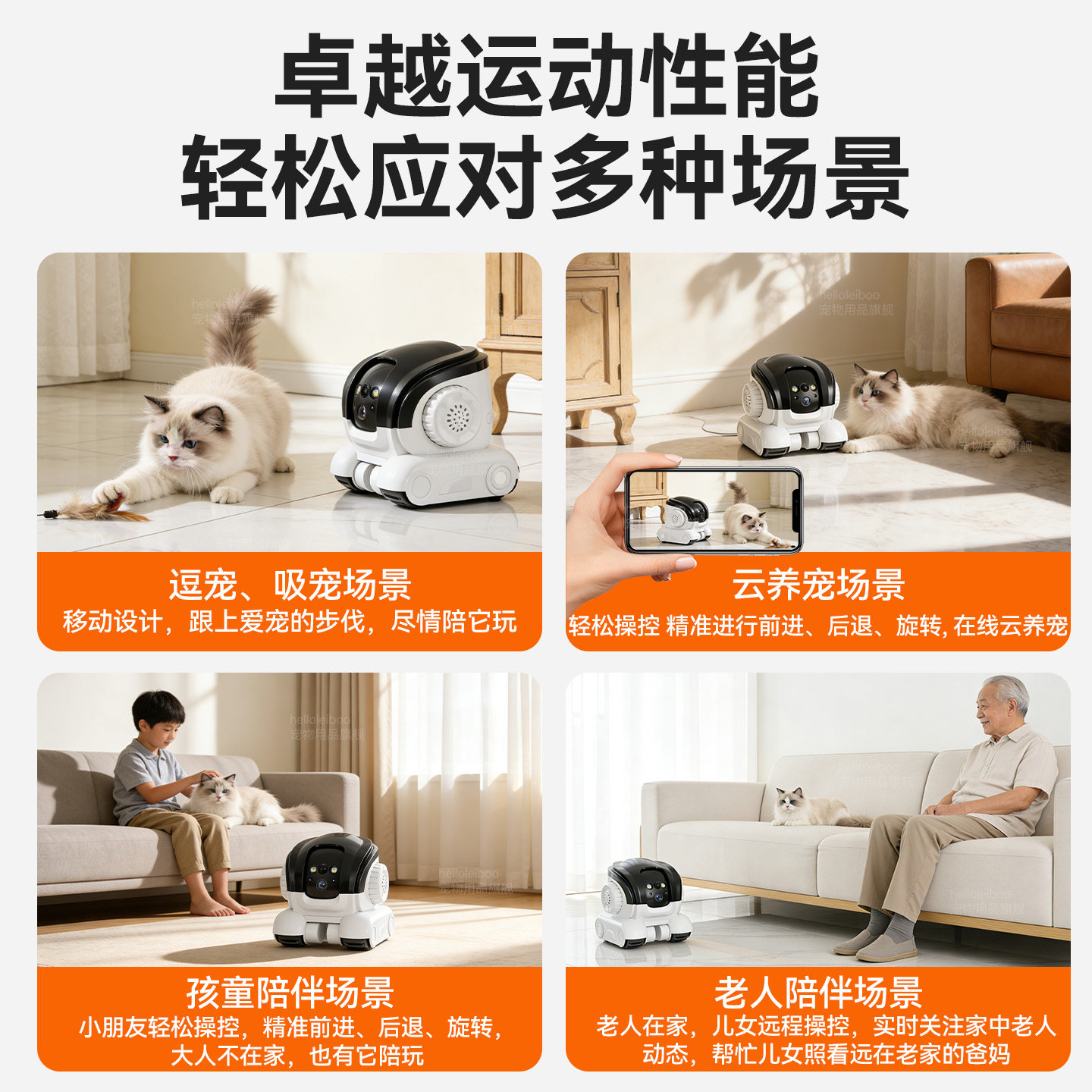 宠物摄像机可移动行走遥控伴宠机器人,集监控、互动与娱乐于一体,专为现代养宠家庭设计。它配备高清摄像头,支持远程实时查看与双向语音通话,让您随时随地陪伴爱宠。机器人可遥控移动,灵活穿梭家中角落,既是智能监控设备,又是猫咪捕猎玩具和狗狗互动伙伴。内置激光逗猫、自动巡逻、避障感应等功能,激发宠物天性,缓解分离焦虑。轻巧机身、静音运行,不惊扰宠物日常生活。无论是上班、出差还是旅行,这款多功能伴宠机器人都能为您的毛孩子带来安全、趣味与陪伴,真正实现“云养宠”新体验。