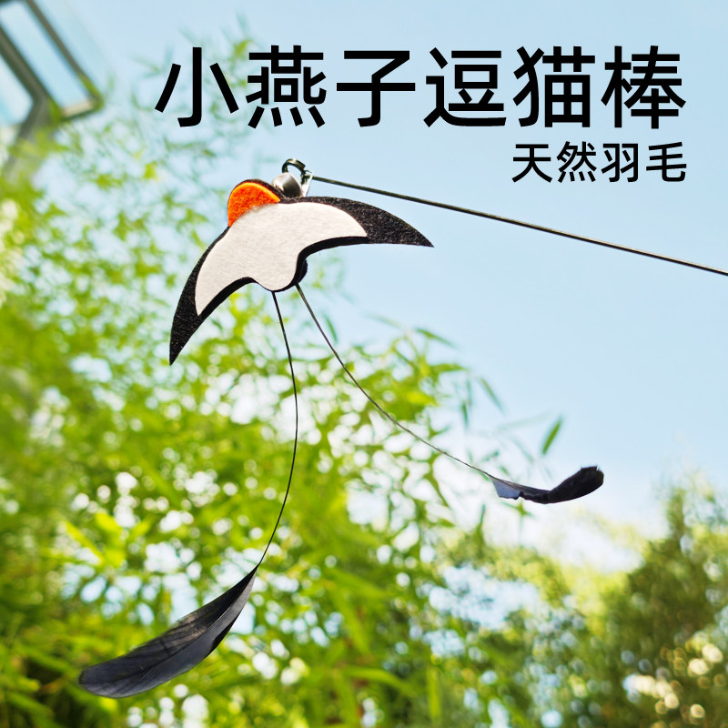 淘宝小燕子羽毛替换头仿真昆虫长杆逗猫棒猫玩具自嗨解闷小猫幼猫用品