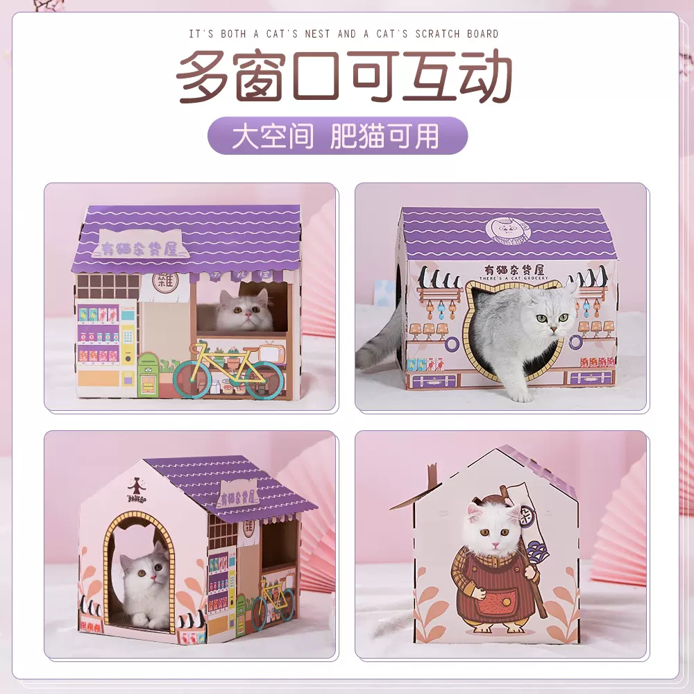 淘宝猫抓板猫窝猫盒耐抓耐磨立体不掉屑猫咪纸箱屋瓦楞纸磨爪猫咪玩具