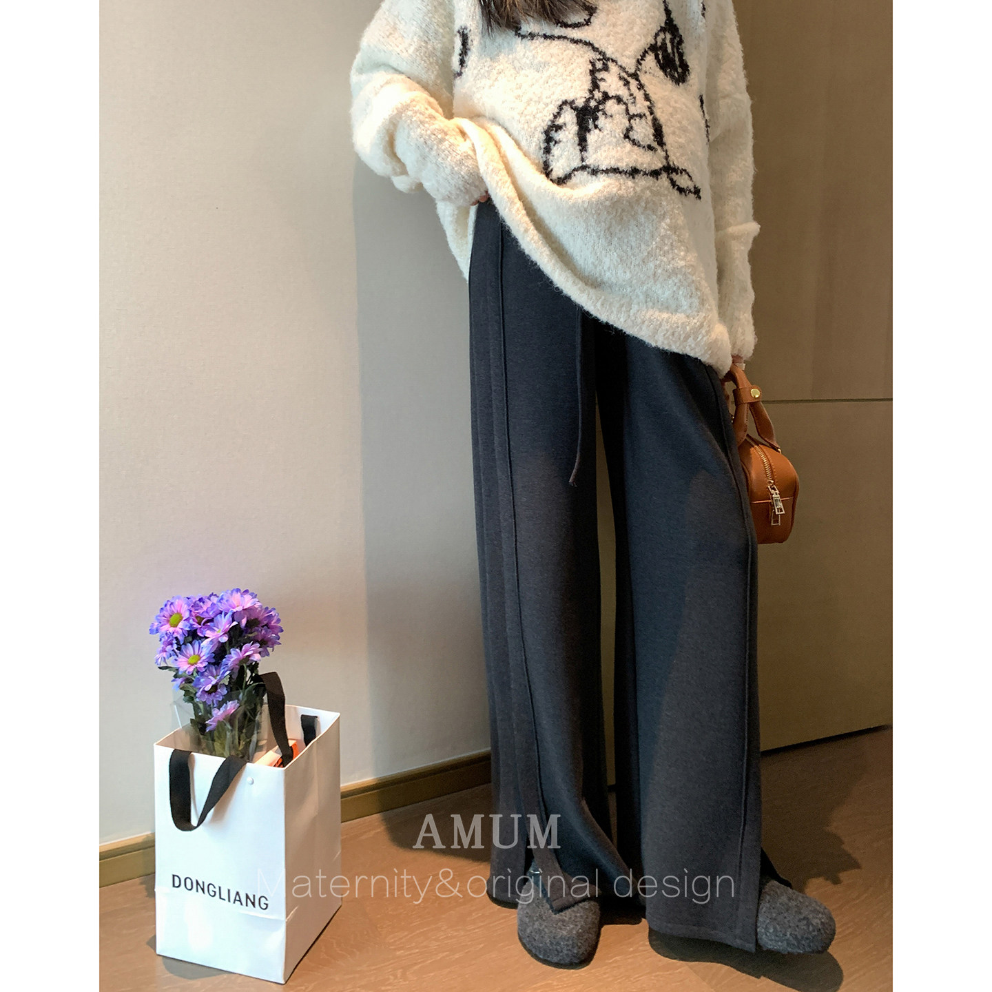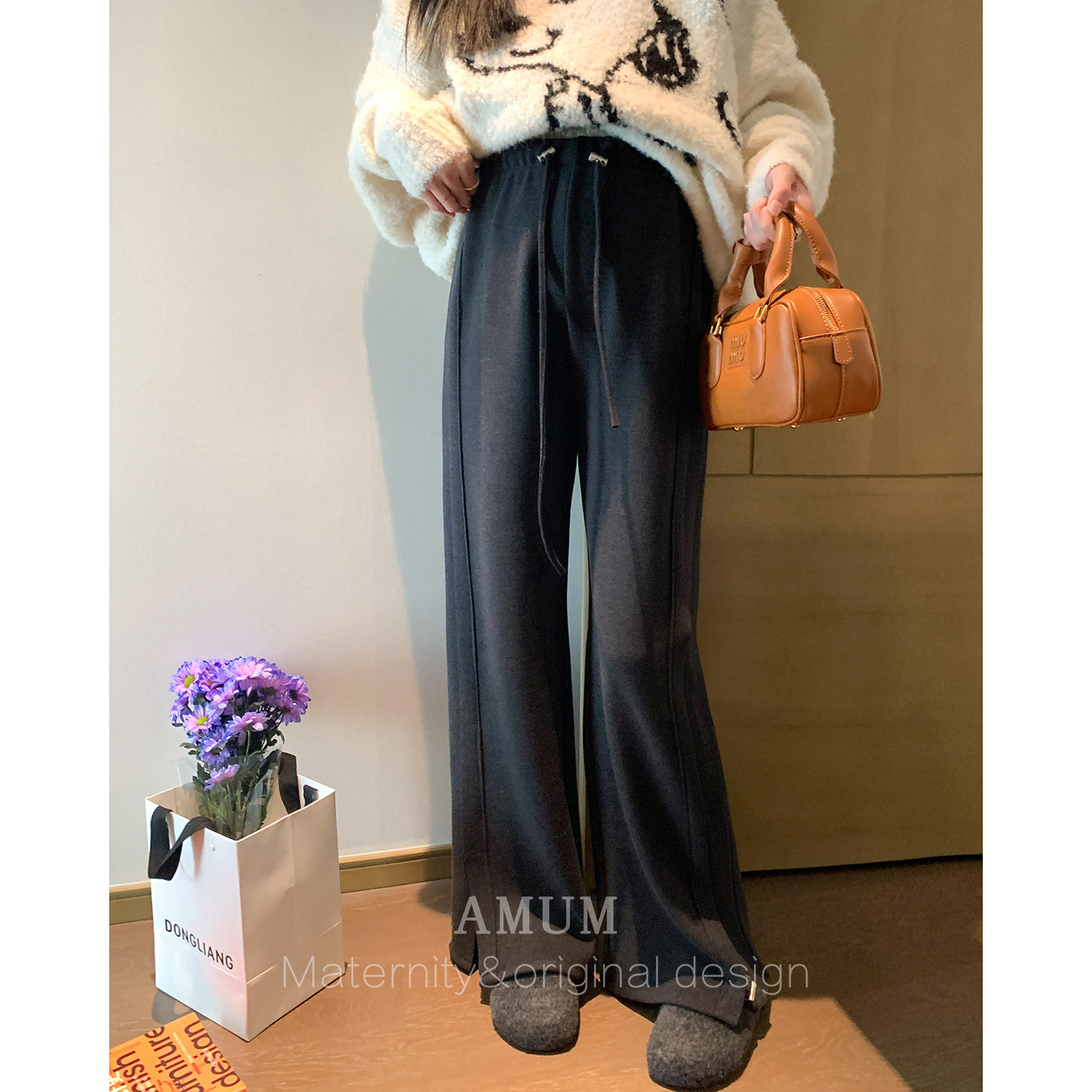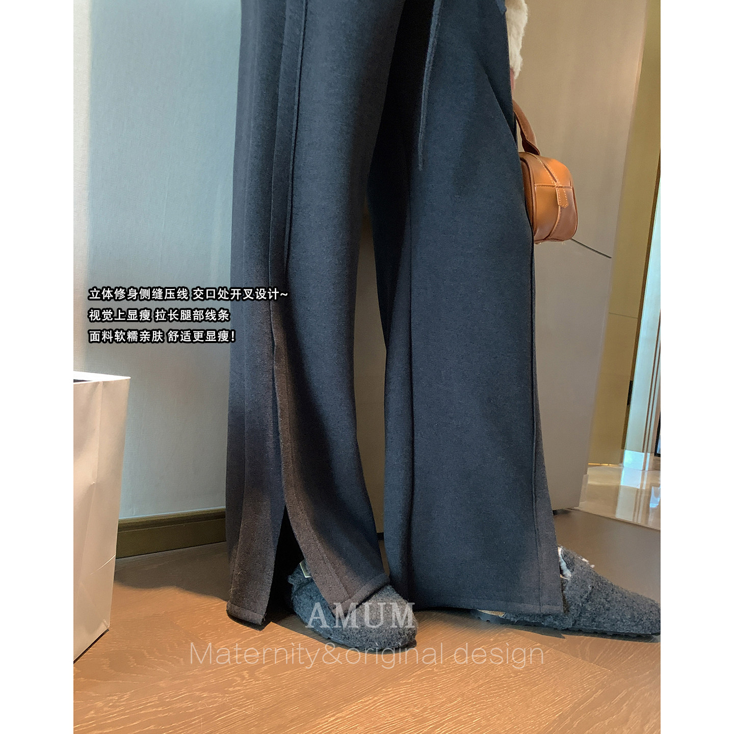 淘宝◆AMUM孕妇装◆满分裤型~秋冬高克重加绒保暖开叉直筒调节阔腿裤