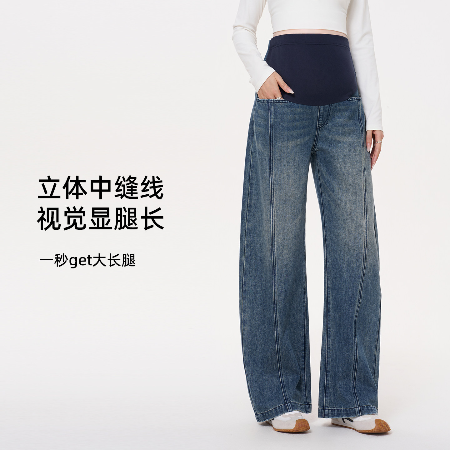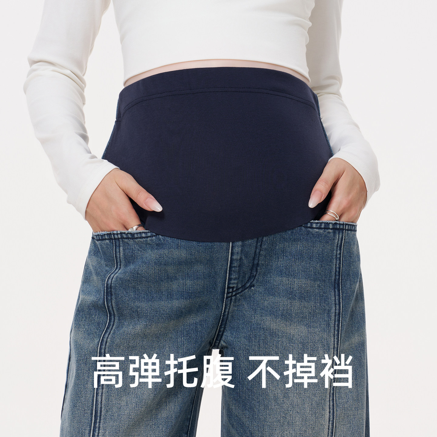 淘宝MASANON孕妇牛仔裤春外穿2026新款孕晚期复古大码托腹阔腿裤春秋