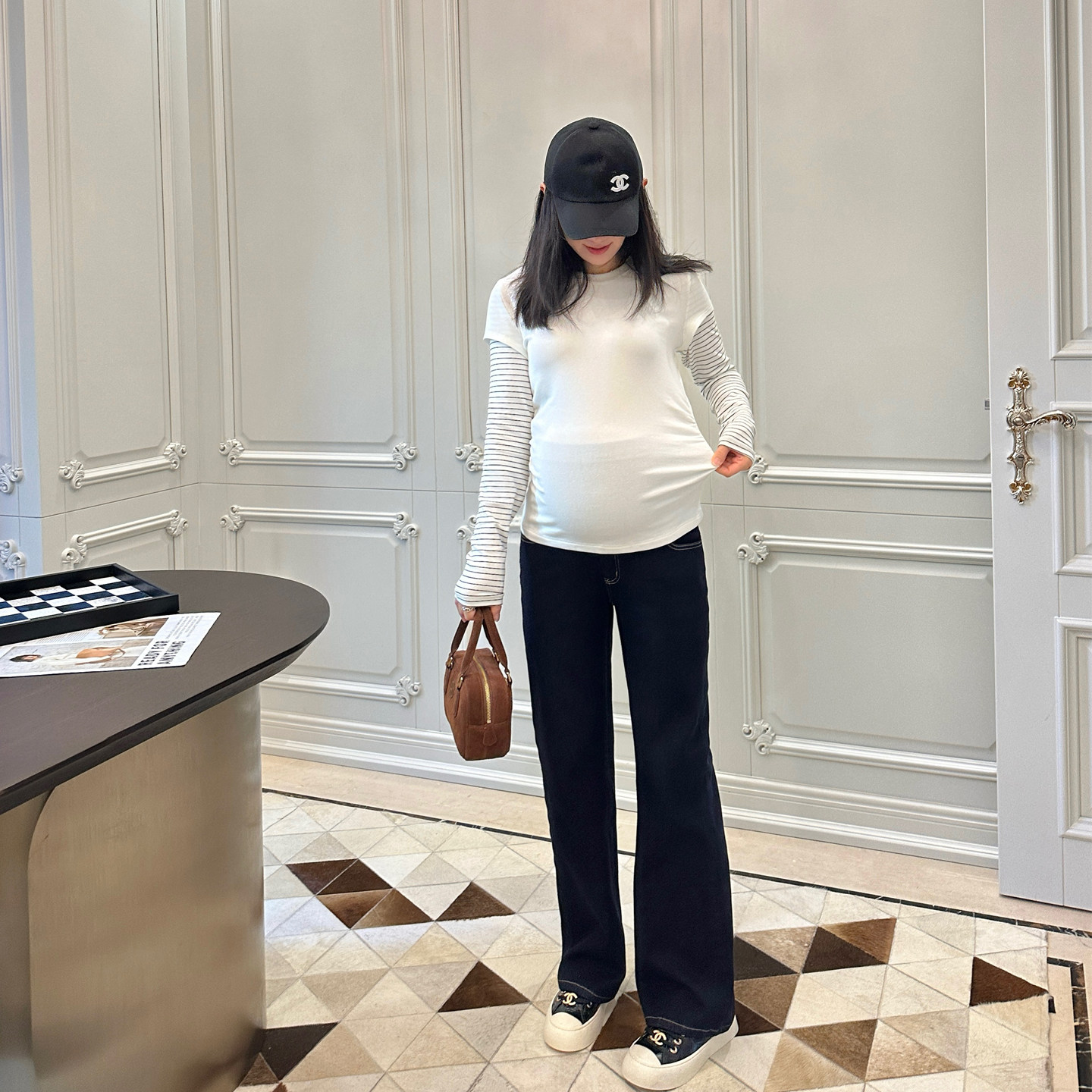 淘ellieluke孕妇裤春秋外穿小个子牛仔裤无托腹长裤阔腿直筒裤春装