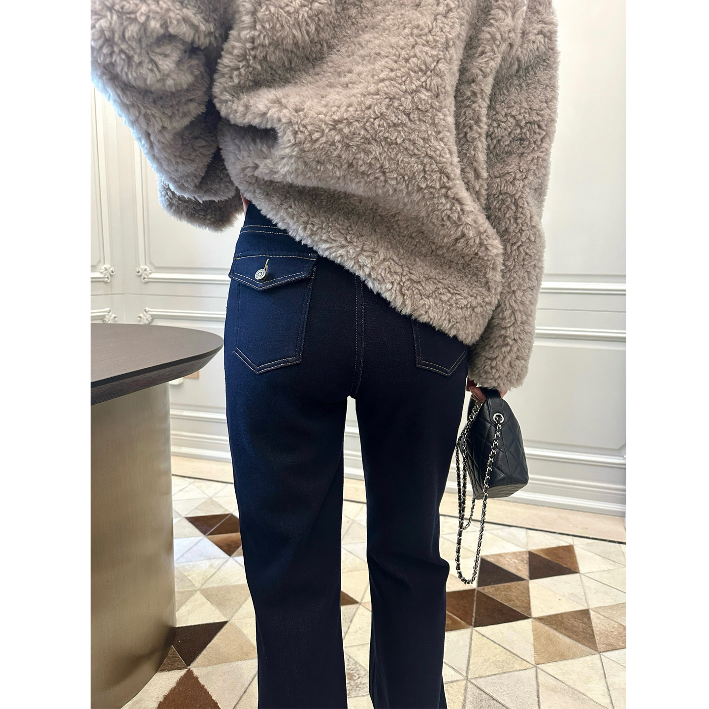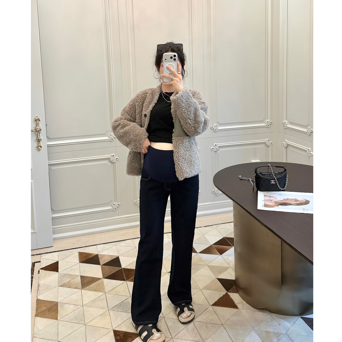 孕妇微喇牛仔裤不勒肚子秋冬季加绒加厚2025新款外穿孕期托腹裤子