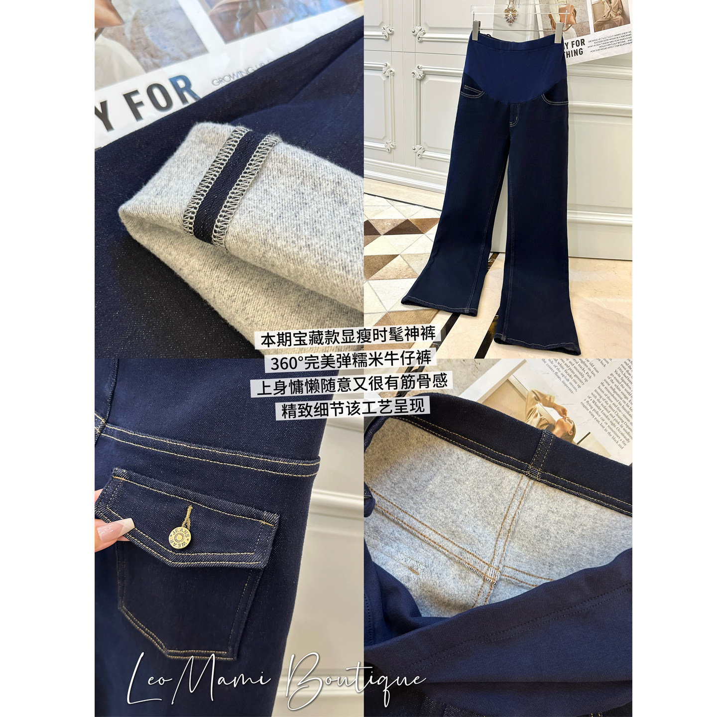 淘宝LeoMami孕妇裤秋冬款加绒加厚微喇叭牛仔裤弹力糯米托腹休闲长裤