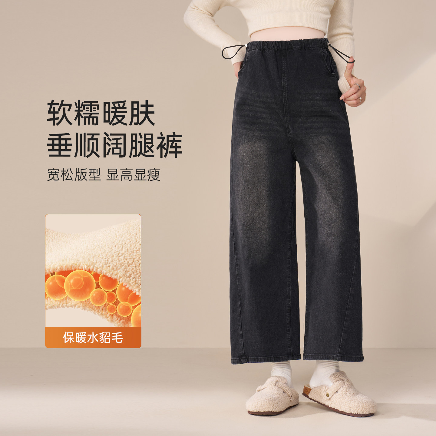 淘宝MASANON孕妇牛仔裤冬装加绒加厚2026新款小个子阔腿裤子秋冬外穿