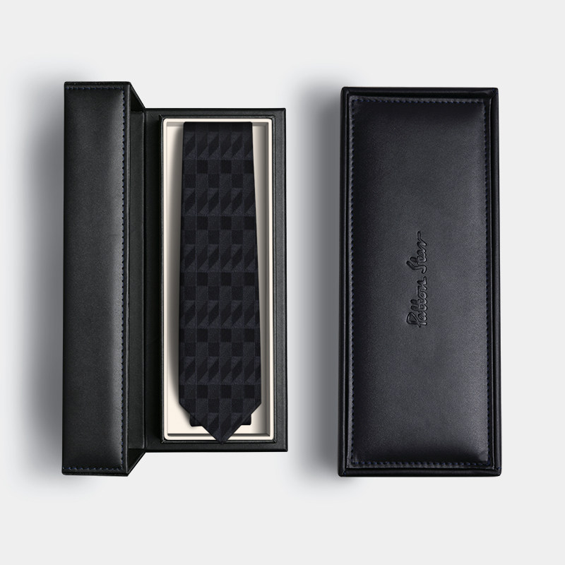 【秋冬新品】PATTONSTAR巴顿星黑色格纹真丝领带,精选100%桑蚕丝材质,触感柔滑,光泽自然,彰显高端品质。经典黑色底搭配精致格纹设计,低调中透出优雅,完美契合商务正装与正式场合需求。精工细作,斜裁工艺确保领带挺括有型,佩戴更显专业气质。搭配精美礼盒包装,自用体面,送礼更有品位。无论是职场通勤、会议洽谈,还是婚礼宴会,这款领带都能为男士造型增添一抹沉稳与魅力。PATTONSTAR以匠心工艺诠释现代绅士风范,是秋冬衣橱不可或缺的点睛之笔。