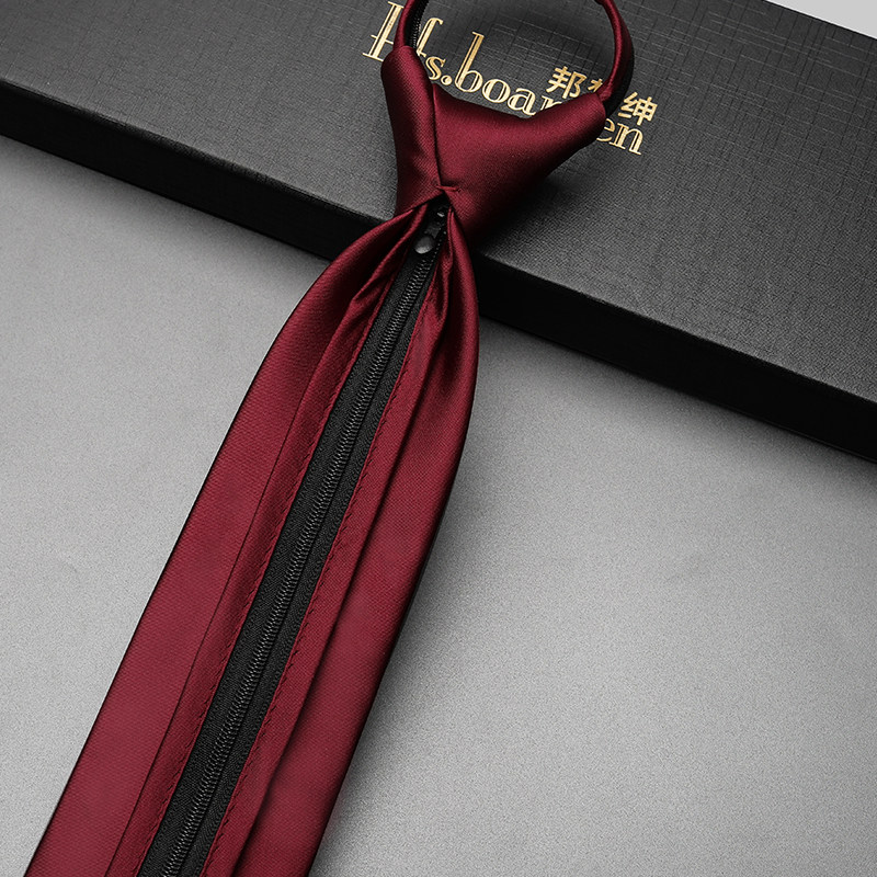 天猫领带男拉链式酒红色正装8.5cm新郎伴郎结婚婚礼婚庆纯色拉链免打