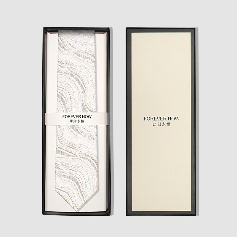 「FOREVERNOW」米白色7cm男士正装领带,专为新郎婚礼及商务正装场合精心设计。采用高品质抗皱面料,触感顺滑,垂坠感佳,米白色调优雅百搭,轻松匹配白色、浅灰或深色西装衬衫,凸显绅士风度与时尚品味。7cm标准宽度契合现代潮流,既不过时也不夸张,适合多种领型。无论是婚礼仪式、商务会议还是重要晚宴,都能展现沉稳与浪漫并存的独特气质。细节做工精致,包装精美,是自用或赠礼的理想之选,诠释「此刻即永恒」的 FOREVERNOW 理念。