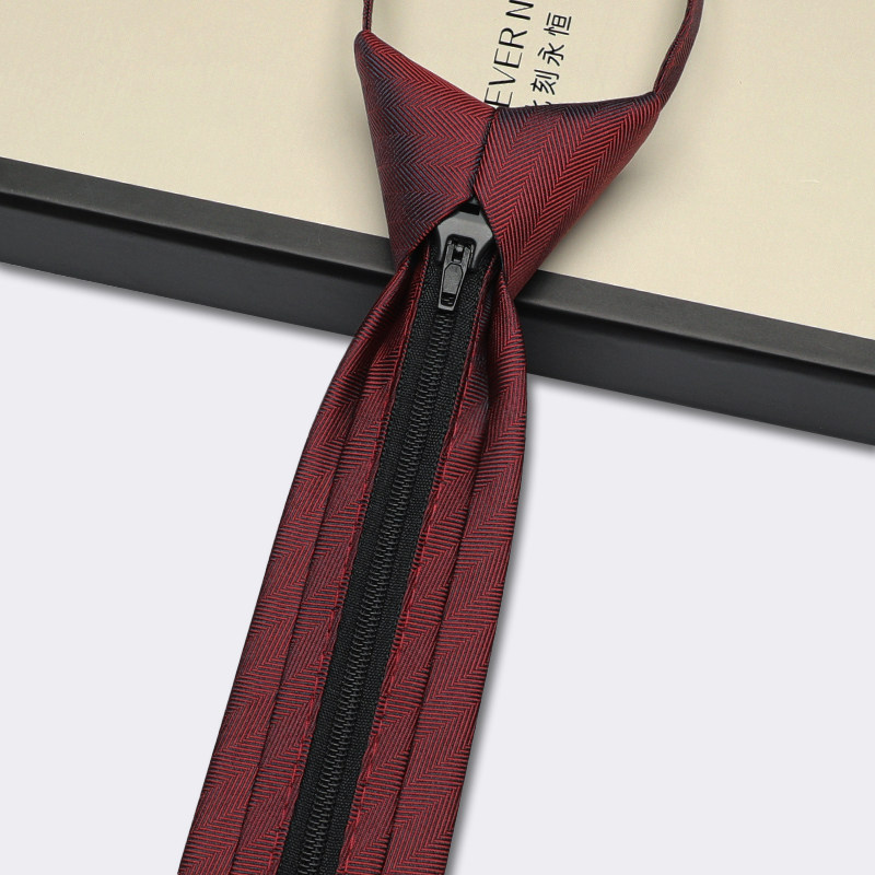 天猫韩版免打结结婚窄领带酒红色男士新郎婚礼西装易拉得懒人拉链领带