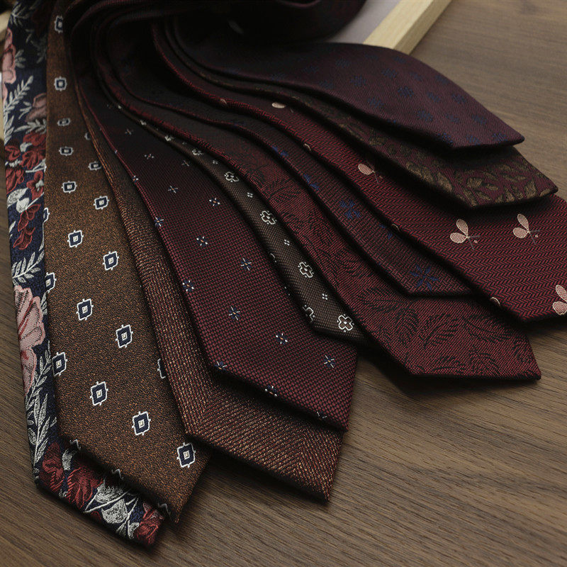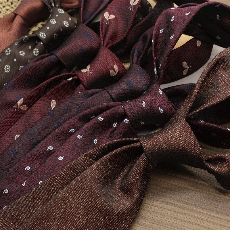 淘宝复古咖色红色花纹结婚婚礼新郎领带正装休闲绅装手打拍照主持年会