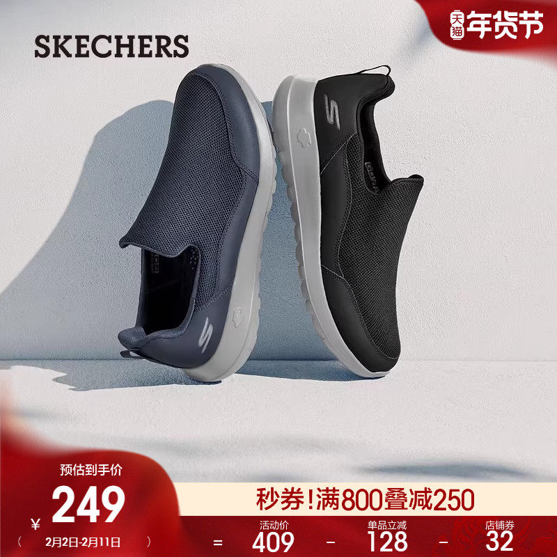 天猫Skechers斯凯奇男中老年爸爸鞋一脚蹬健步鞋懒人鞋厚底运动休闲鞋