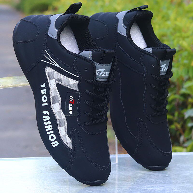 淘防水男鞋秋冬季新款男士休闲鞋软底跑步鞋黑色皮面运动鞋防滑鞋男