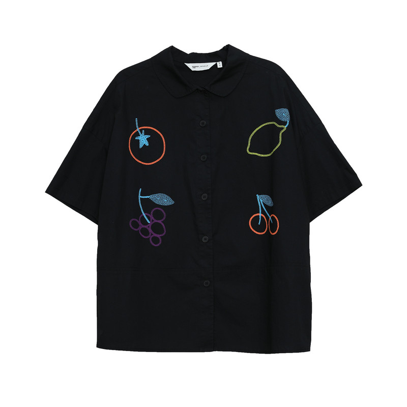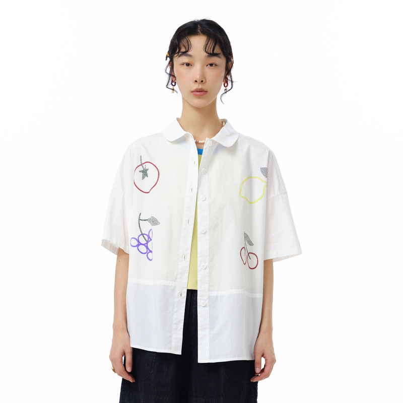 天猫MOVEUP幻走2025夏季新款.FUN系列纯棉水果图案印花短款衬衫女
