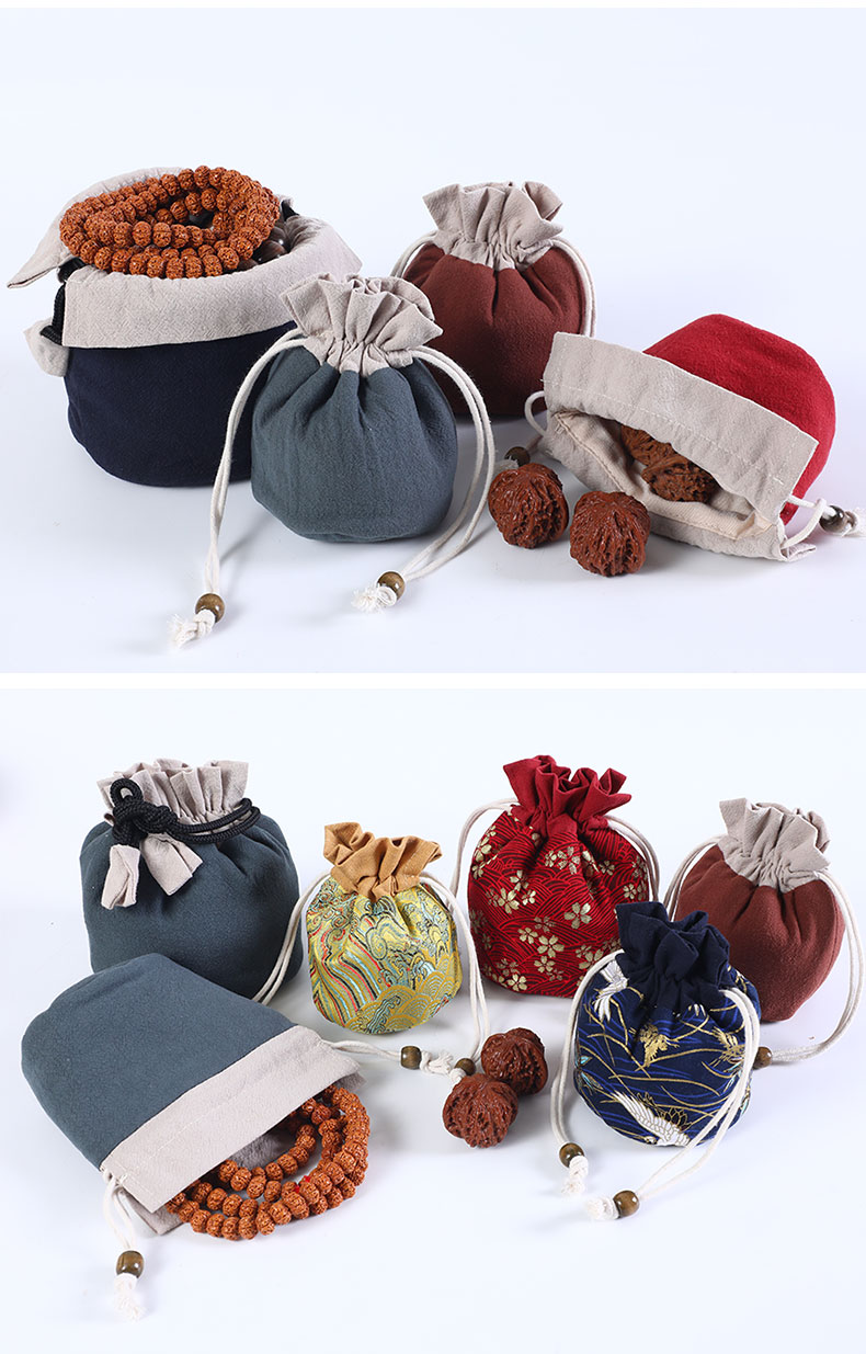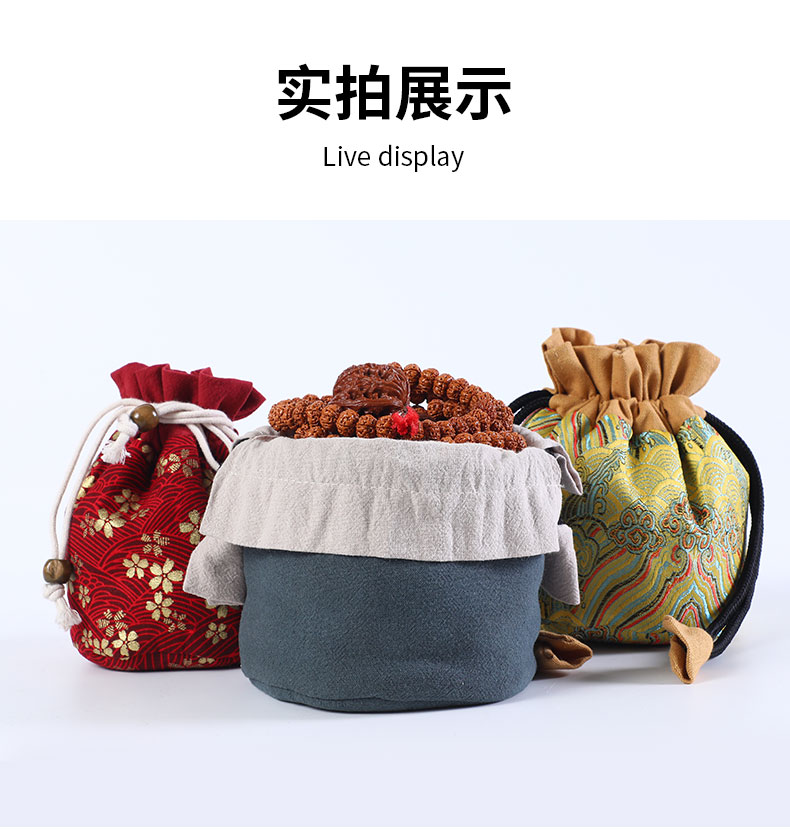 淘古风棉麻口袋礼品袋抽绳袋文玩收纳袋荷花袋锦囊香包束口袋盘珠袋