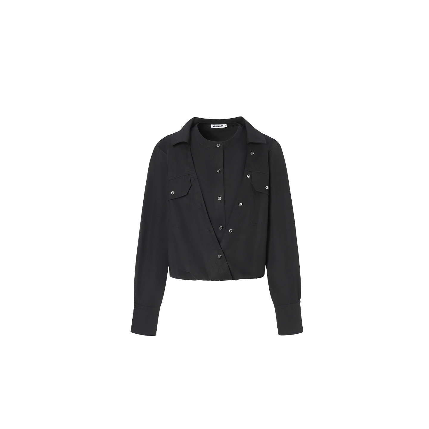 天猫LEDIM WANG黑标/知识分子花苞假两件黑色衬衫女2025秋季新款衬衣