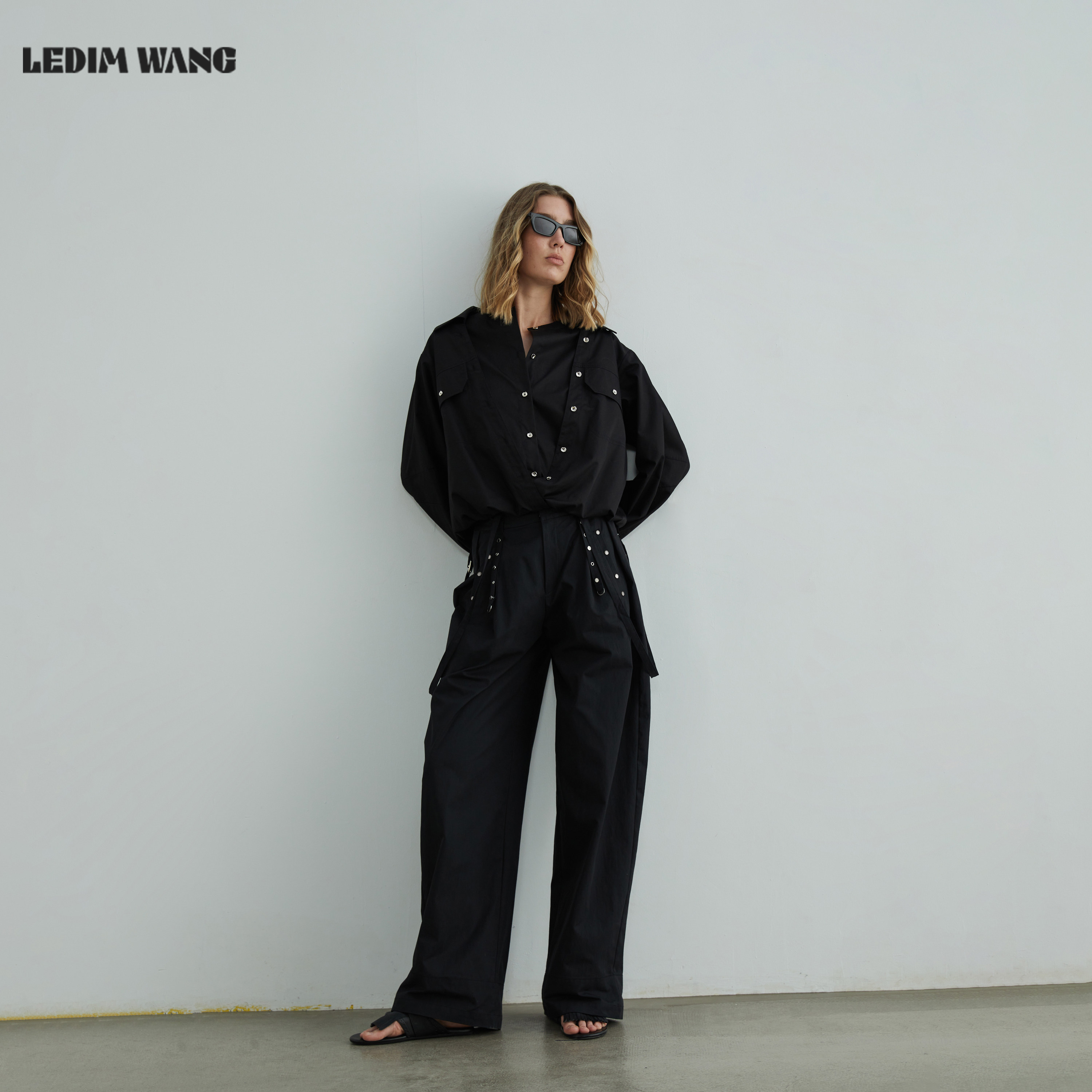 LEDIMWANG黑标2025秋季新款“知识分子花苞假两件”黑色衬衫,融合极简美学与结构主义设计,专为独立女性打造。采用高品质垂感面料,以经典黑色为基调,通过假两件剪裁巧妙营造层次感,肩部花苞细节增添柔美元素,刚柔并济。立领设计与微宽松廓形兼顾知性气质与穿着舒适,细节处彰显匠心。无论是搭配西装裤通勤,或配半身裙出席文艺场合,皆能展现低调而高级的时尚态度。LEDIMWANG以黑标系列诠释现代知识女性的精神内核——理性、优雅且不失个性,是本季不可错过的衣橱新宠。
