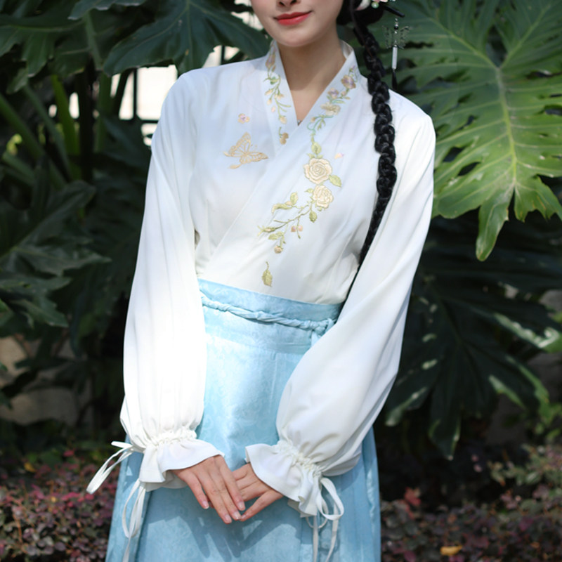 Ching's 复古收腰百搭砍袖衬衫女 法式小众设计感气质修身上衣夏