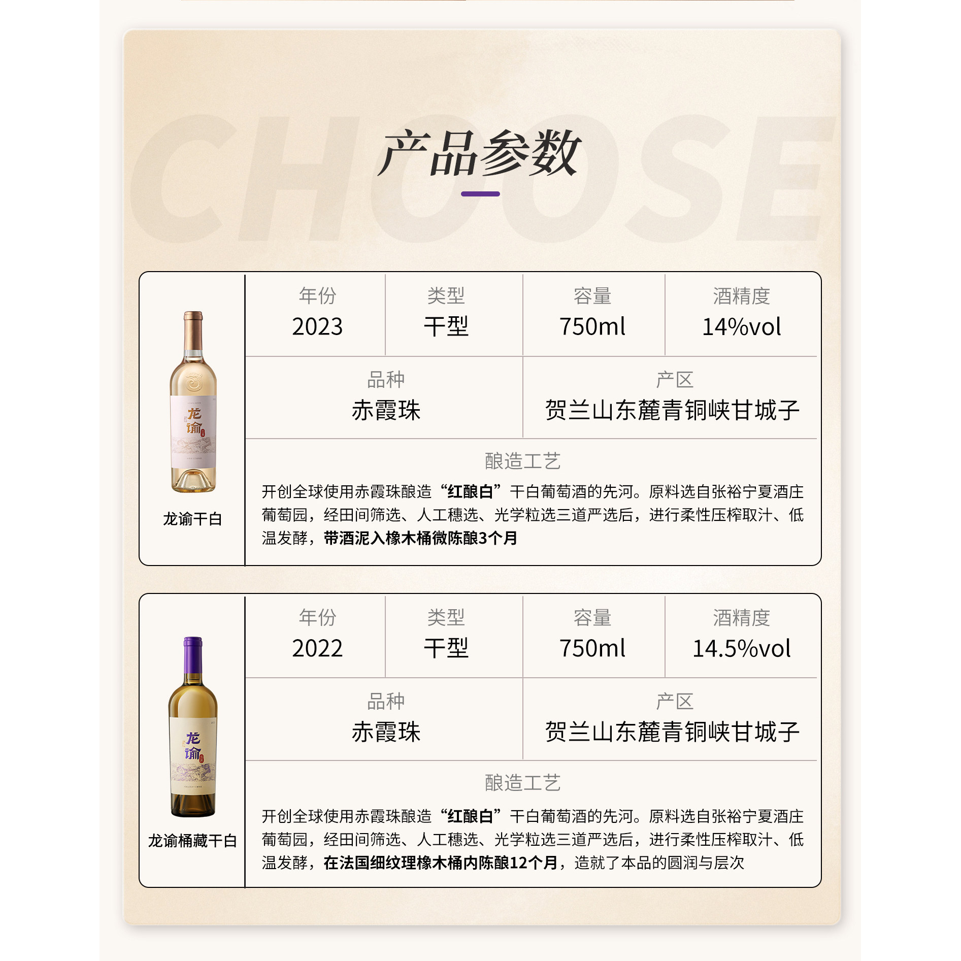 天猫张裕官方国红龙谕酒庄宁夏桶藏赤霞珠干白葡萄酒红酿白高档礼盒