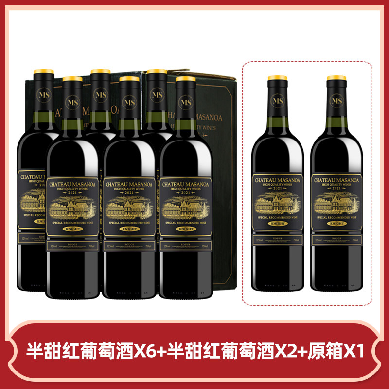淘宝玛莎诺娅骑士古堡半甜型红酒葡萄酒整箱12度红酒6支装初恋酒送礼