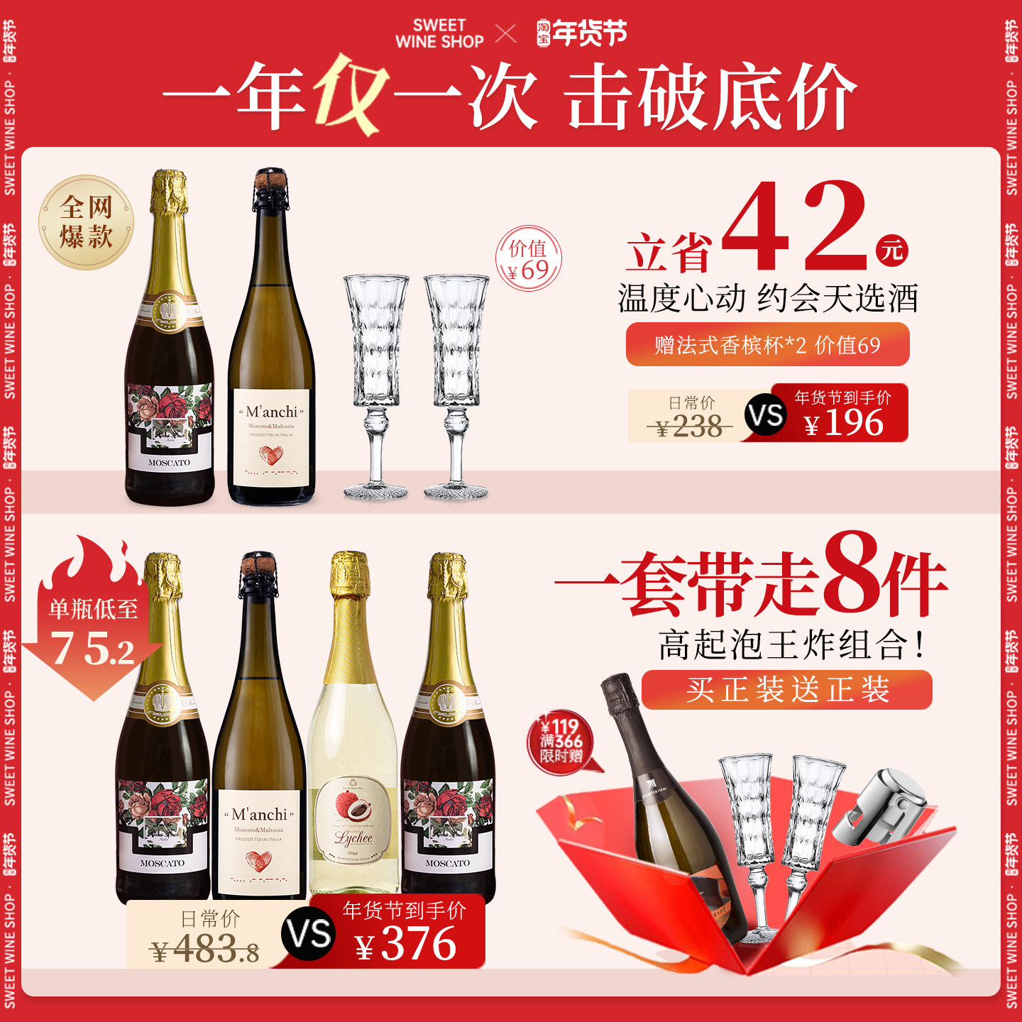 淘宝情人节礼物富海风温度玫瑰莫斯卡托起泡酒送女友气泡微醺白葡萄酒
