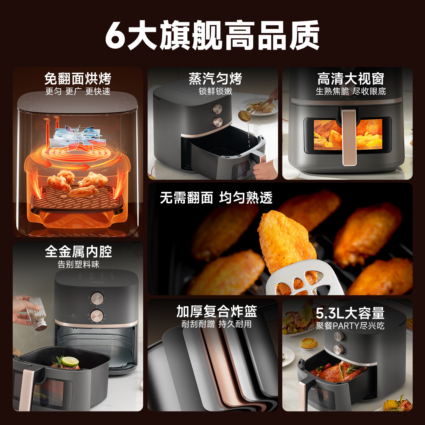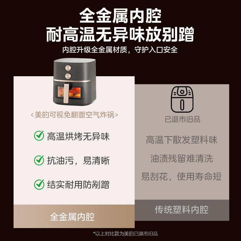 天猫美的空气炸锅家用可视5.3L大容量金属烤箱一体电烤箱空气电炸锅