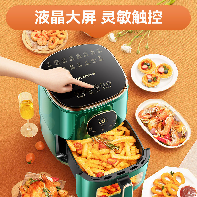本博空气炸锅家用新款电烤箱电炸锅一体免翻面可视大容量烹饪机,集空气炸、烘焙、烧烤、脱水等多功能于一体,满足多样化烹饪需求。采用高速热风循环技术,无需翻面即可均匀加热,锁住食材水分,外酥里嫩更健康。配备大容量设计,轻松应对家庭聚餐;透明可视窗搭配LED照明,实时观察烹饪状态,精准掌控火候。智能触控面板预设多种菜单,操作简单便捷。食品级不粘涂层内胆,易清洁更安心。低脂少油烹饪方式,兼顾美味与健康,是现代厨房的理想之选。