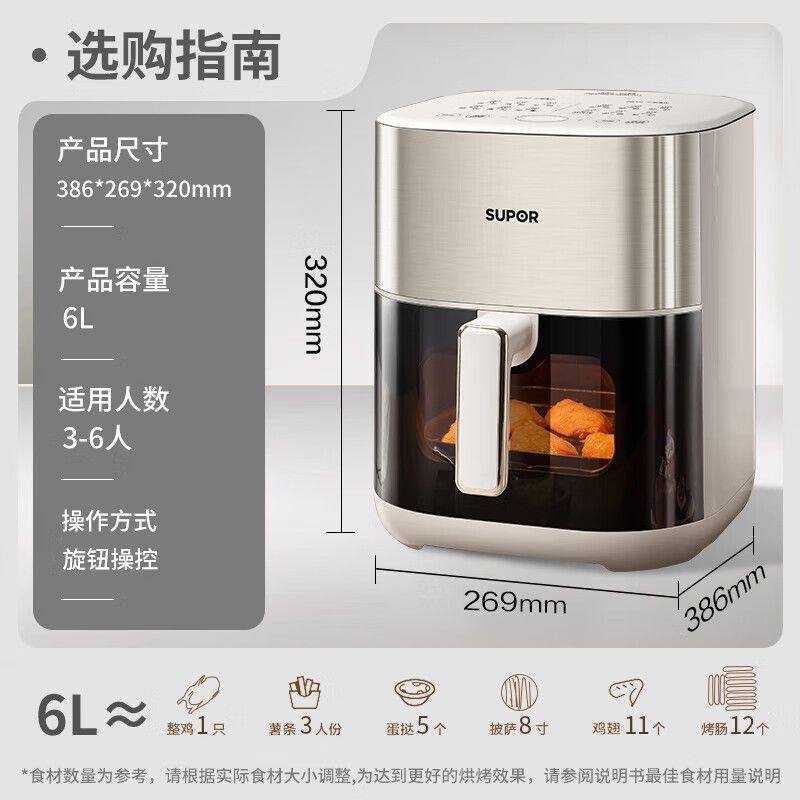淘宝苏泊尔空气炸锅家用6L双热源电炸烤箱一体机多功能可视化金属内腔
