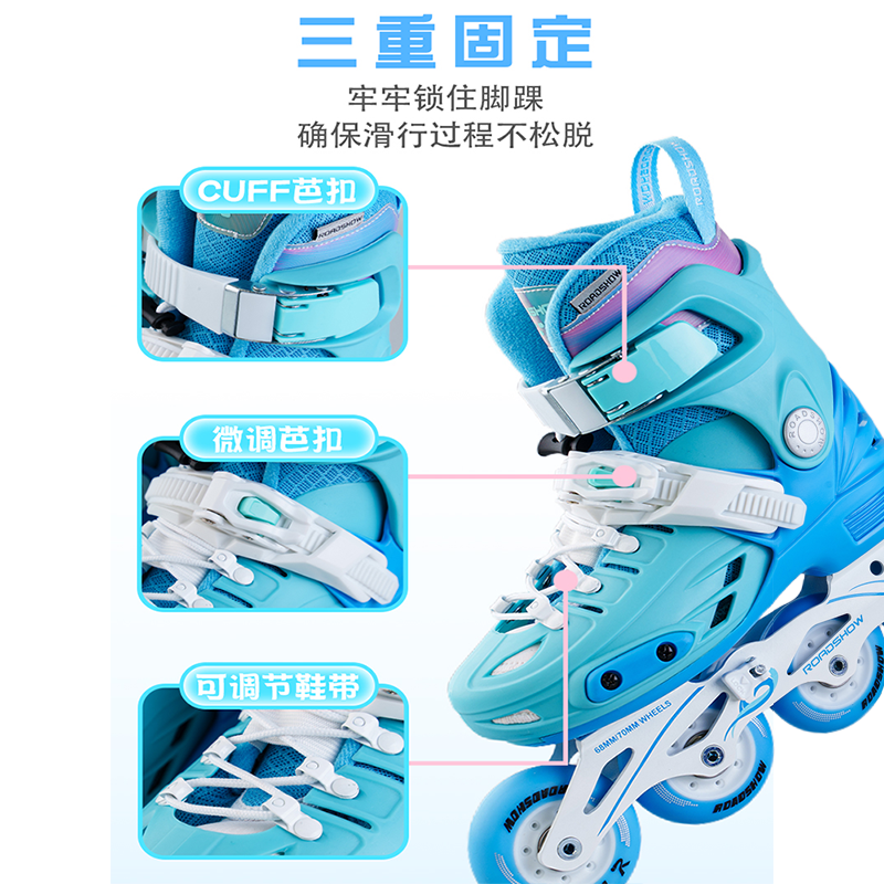 天儿童轮滑鞋初学者溜冰鞋女童旱冰滑冰3-6-12岁女孩可调节大小滑轮