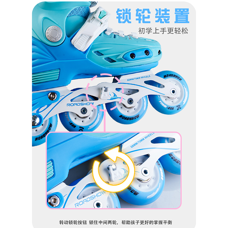 乐秀RX1S-T锁轮溜冰鞋专为儿童设计,尤其适合女孩参与轮滑比赛或日常练习。采用高强度透气鞋身,舒适贴合脚型,有效保护脚踝;配备可调节尺码系统,适应不同成长阶段。四轮双刹设计,稳定性强,初学者更易掌握平衡与安全制动。轴承顺滑耐用,滑行流畅静音,适合室内外多种场地。锁轮功能可固定前轮,帮助新手逐步适应滑行节奏。整体轻便灵活,兼顾安全性与专业性,是儿童从入门到进阶的理想选择,助力孩子在轮滑运动中自信成长、享受乐趣。