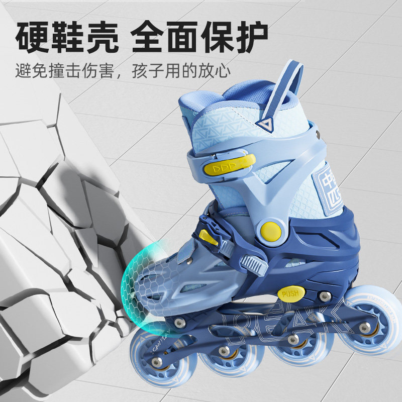 天特步儿童轮滑鞋溜冰鞋女童初学者滑轮滑冰旱冰男孩3-12岁直排轮
