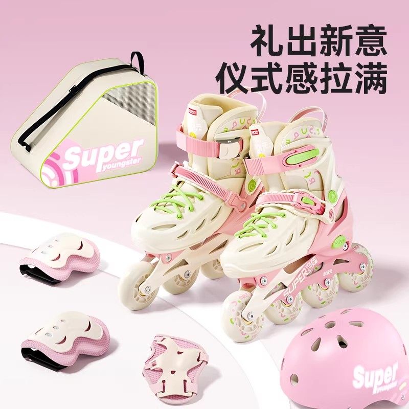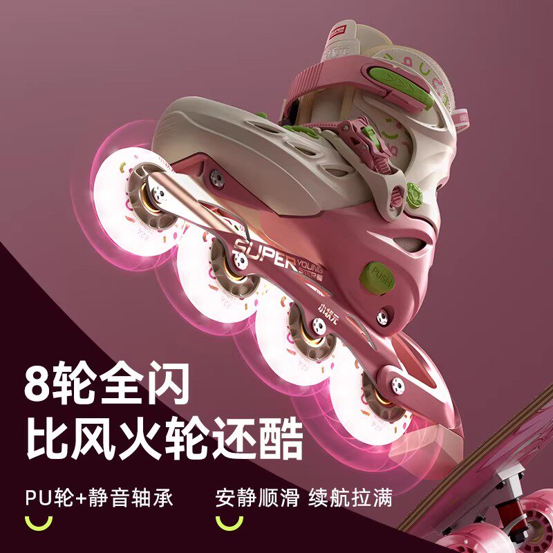 天儿童轮滑鞋初学者溜冰鞋女童旱冰滑冰3-6-12岁女孩可调节大小滑轮