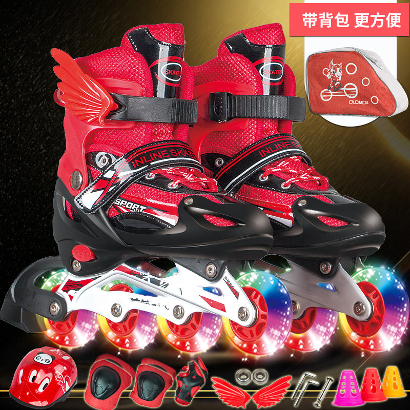 淘宝3-4-6-8-10-12岁儿童溜冰鞋全套轮滑男孩女孩闪光旱冰滑冰鞋可调