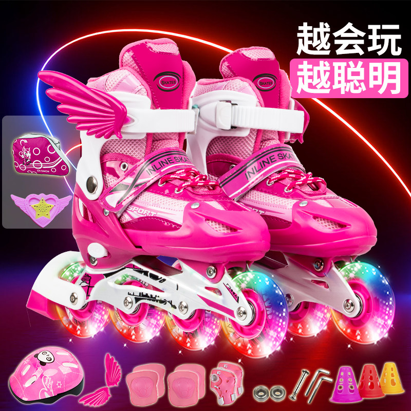 天儿童轮滑鞋初学者溜冰鞋女童旱冰滑冰3-6-12岁女孩可调节大小滑轮